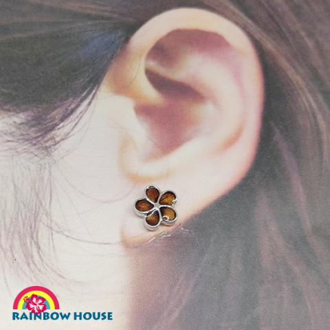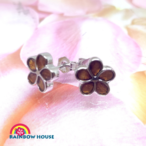 ハワイアンジュエリー真鍮BrassとKoaのプルメリアスタッドピアス