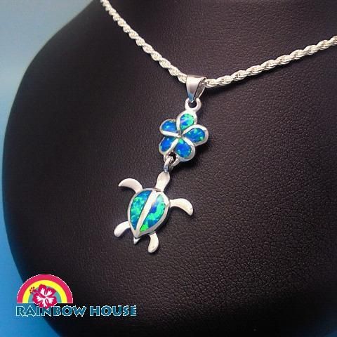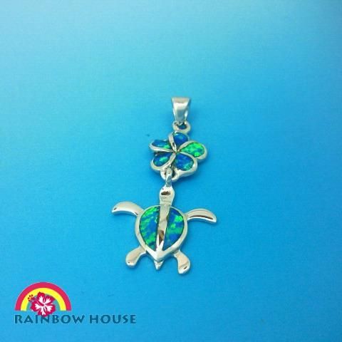 ハワイアンジュエリーHONUとプルメリアブルーオパールペンダントヘッド